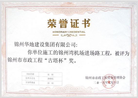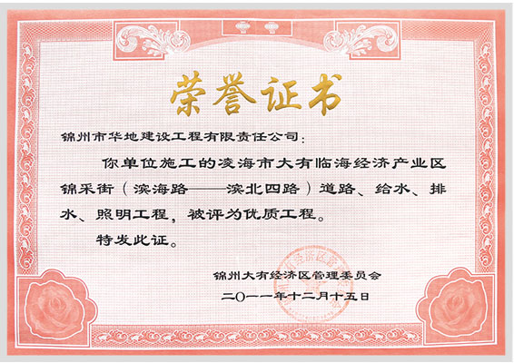 企業(yè)10余年開拓進(jìn)取過程中先后榮獲“遼寧省建筑業(yè)優(yōu)秀企業(yè)”“遼寧省AAAAA級信用企業(yè)”“遼寧省建設(shè)工程優(yōu)質(zhì)結(jié)構(gòu)企業(yè)”“遼寧省建設(shè)工程世紀(jì)杯(省優(yōu)質(zhì)工程)企業(yè)”連續(xù)6年榮獲“遼寧省守合同重信用企業(yè)”,連續(xù)5年榮獲“重點(diǎn)工程招投標(biāo)領(lǐng)域AAA級信用企業(yè)”,連續(xù)10年榮獲“錦州市先進(jìn)企業(yè)”及安全生產(chǎn)目標(biāo)管理先進(jìn)單位”“優(yōu)秀誠信企業(yè)””國家AAAA級旅游景區(qū)””省級生態(tài)旅游示范區(qū)””遼寧省省級旅游度假區(qū)”等榮譽(yù),并通過質(zhì)量管理體系、環(huán)境管理體系、職業(yè)健康安全管理體系認(rèn)證。